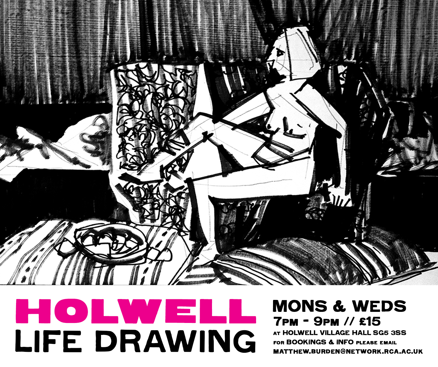 Now into it’s fourth year, Holwell Life Drawing manifests as regular Monday & Wednesday evenings classes – both 7-9pm – at Holwell Village Hall – near Hitchin, Hertfordshire.